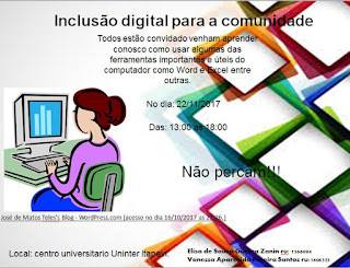 Participem! Esse evento sera para todos que tiverem dificuldades em mexer nos programas do computador. No dia 22/11 das 13:00 as 18:00 venham ate o polo e aprendam conosco.
